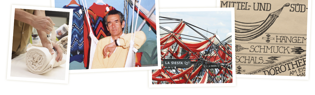 El 16 de marzo de 1991, nuestros fundadores vendieron su primera hamaca en la exposición de Renania-Palatinado en Maguncia. El puesto de hamacas era un andamio de acero decorado con colores, donde se presentaban las hamacas para que los clientes probaran. Además de las hamacas, inicialmente se ofrecieron suéteres y productos de artesanía de América Latina.