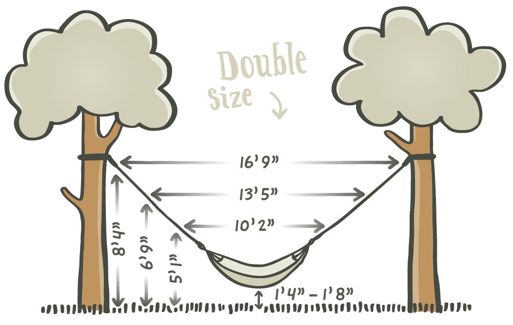 - When setting up your hammock, make sure to maintain the correct ratio between the distance and height of the attachment points. The hanging height should be approximately half of the hanging distance. If you increase the distance between the attachment points, you should also mount them higher accordingly.