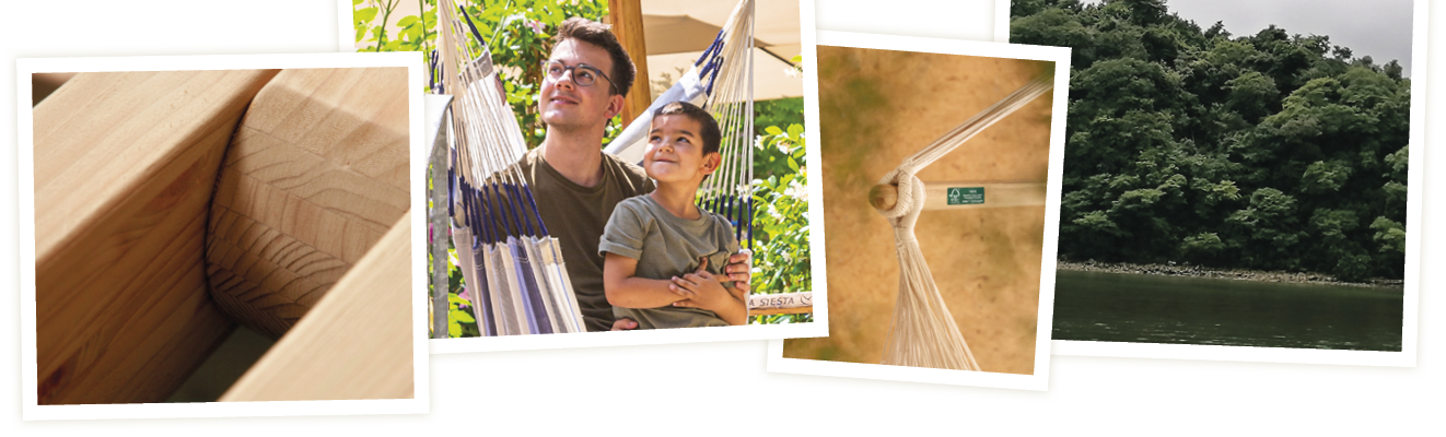 We started converting to FSC-certified timbers in 2008 and have steadily increased our supply from them ever since. All wood used for LA SIESTA hammock stands, spreader bar hammocks and hanging chairs are made from FSC certified materials. We can thus guarantee our wood comes from exemplary and sustainable production practices.