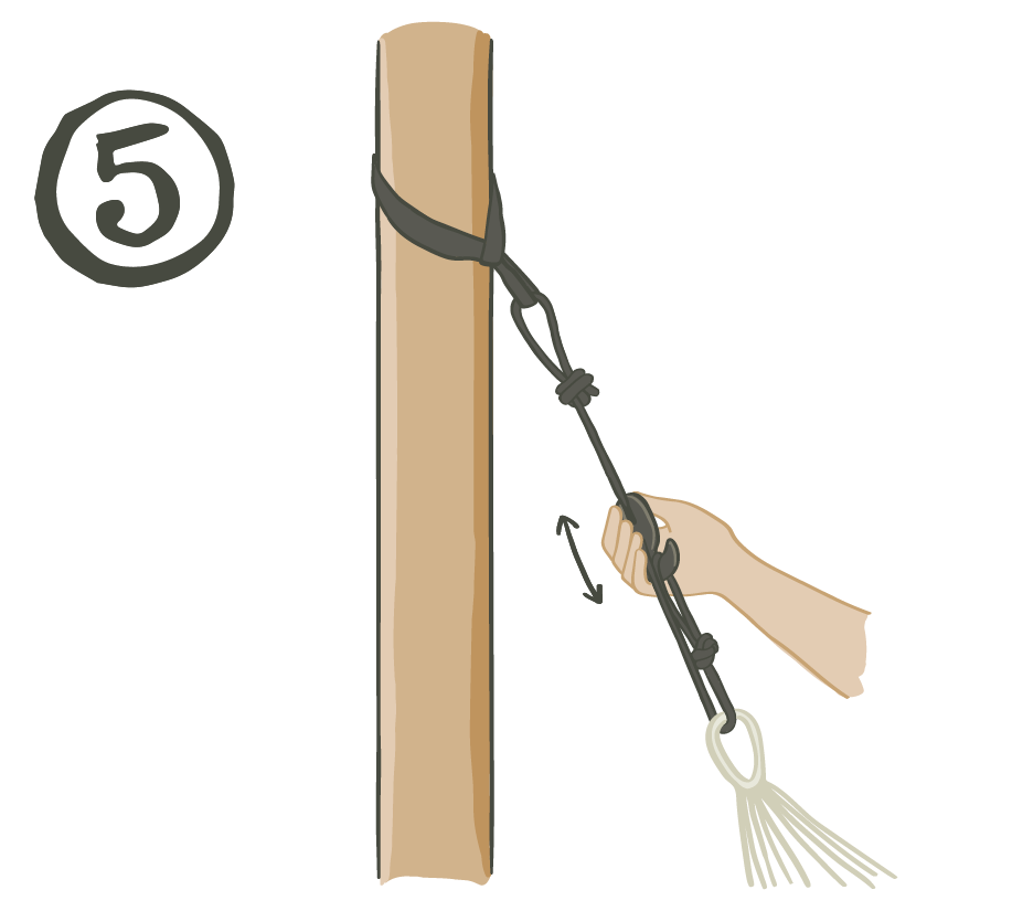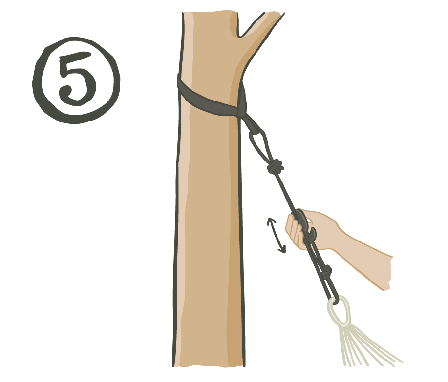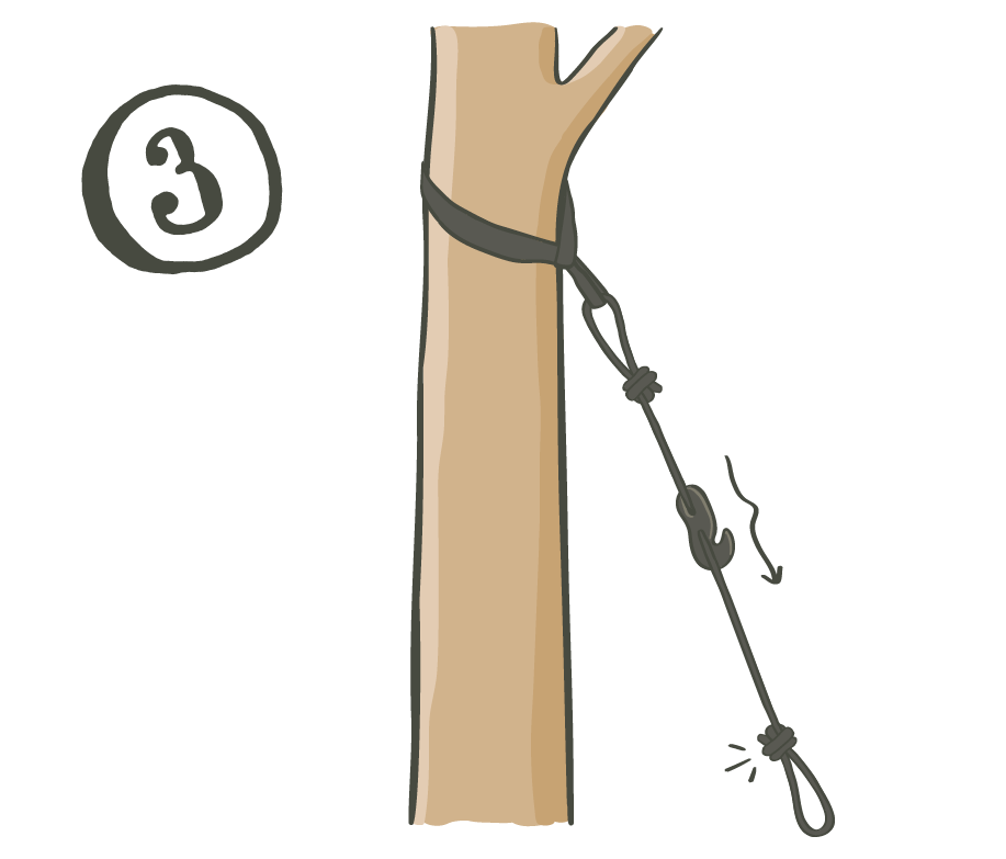 For example, if your spreader bar hammock is three meters long (9‘10“), there should be three meters (9‘10“) between the suspension points.
