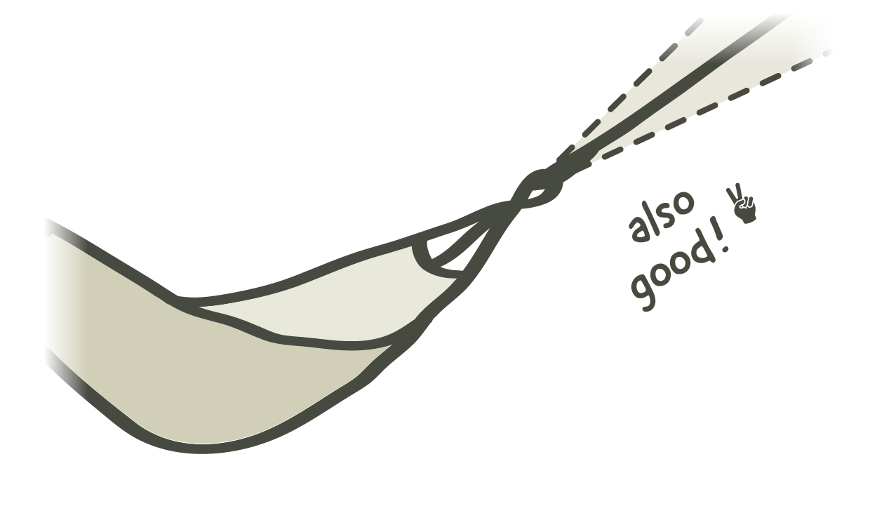 For spreader bar hammocks: If the suspension points are at different heights and are further apart than the minimums described, your hammock can be attached higher on one or the other side - only the recommended ratio of suspension distance and length is important.