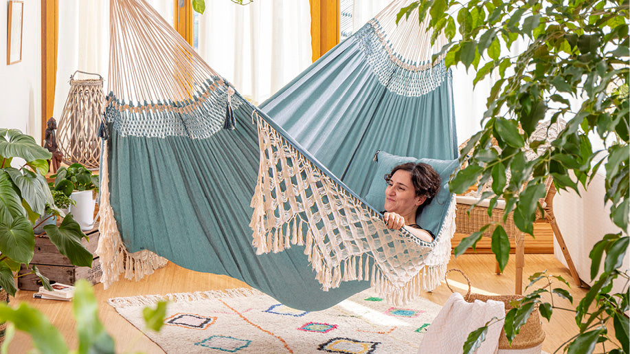While the hammock is often considered a garden or outdoor product, in South America it can be found in almost every home. And not without good reason – an indoor hammock provides calm and comfort between your own four walls regardless of wind or weather outside.