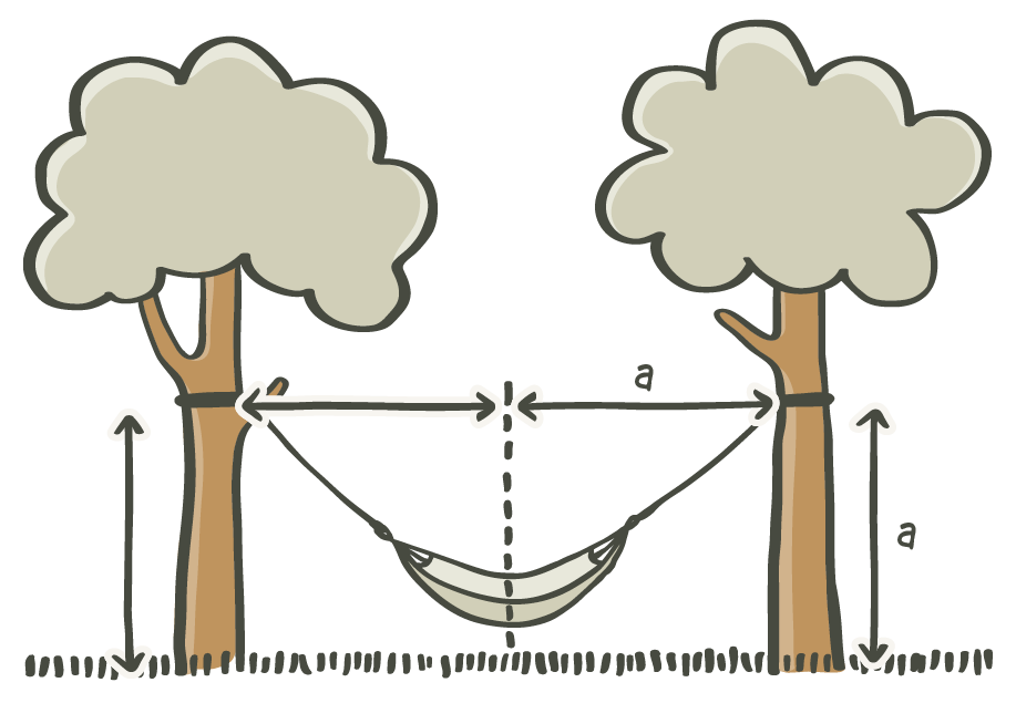 To meet the minimum required suspension height for a classic hammock, the distance from the center of the hammock to the tree should be the same as the distance from the ground to the